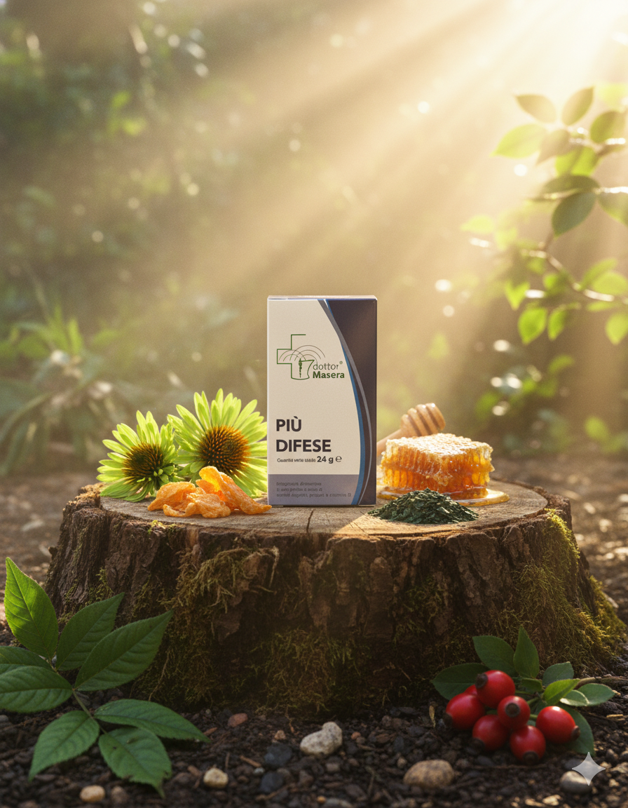 Descrizione breve: integratore con Echinacea, Papaya fermentata e Vitamina D per rinforzare le difese immunitarie e sostenere l’organismo nei periodi di stress o cambio di stagione.